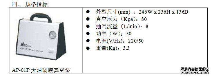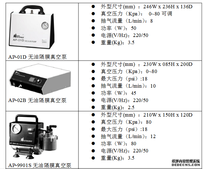 2.為了延伸電機(jī)的運(yùn)用壽命,AP-01P/01D真空泵規(guī)劃有過熱維護(hù)功用。為了確保真空泵正常作業(yè),無(wú)油真空泵接連作業(yè)時(shí)間應(yīng)盡量少于30分鐘。如果泵體過熱無(wú)法正常作業(yè),封閉電源開關(guān),待電機(jī)溫度降低后,再?gòu)念^發(fā)動(dòng)真空泵。